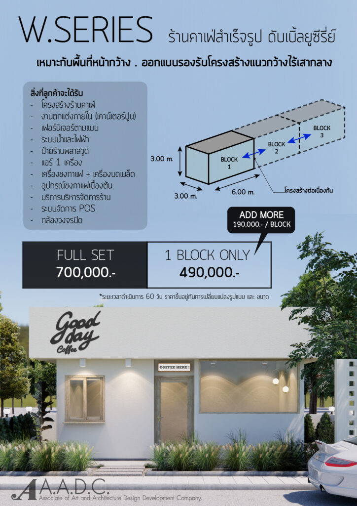 - กรณีมีงาน Landscape จัดสวน +55,000.- จัดในพื้นที่รอบร้านไม่เกิน 2.5 เมตร